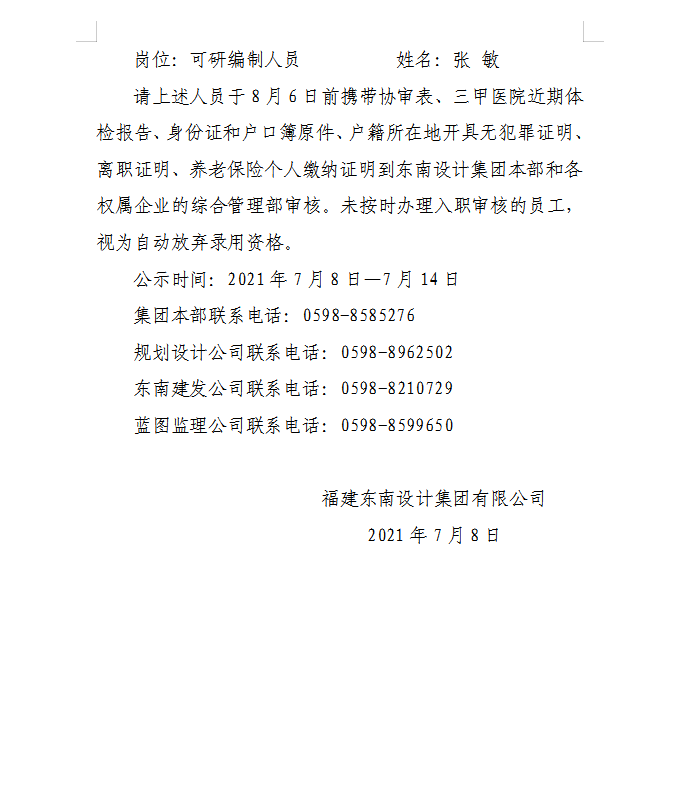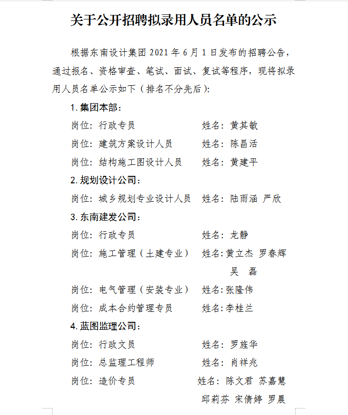 關(guān)于公開招聘擬錄用人員名單的公示